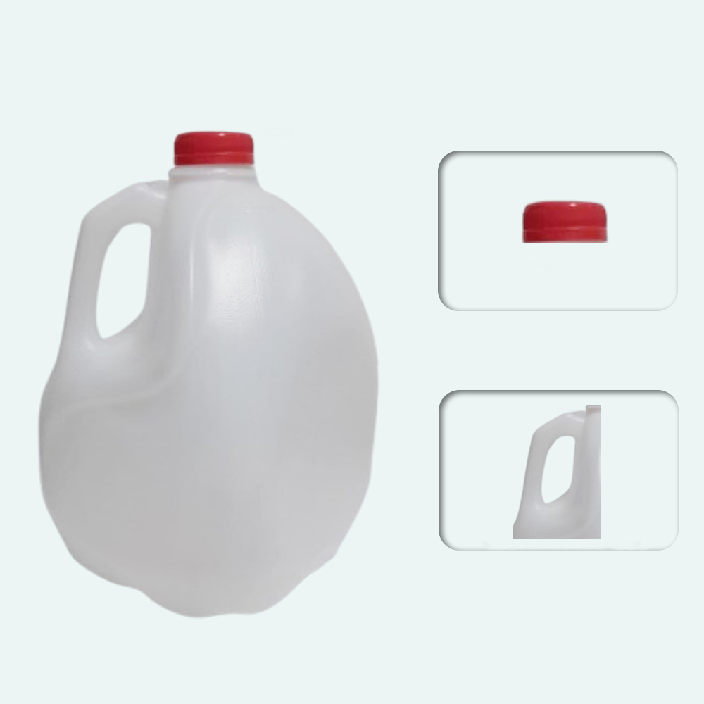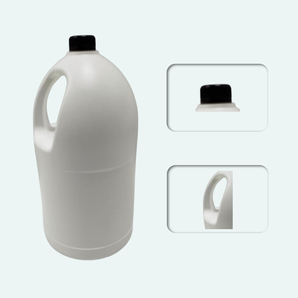 Envase de 4 litros, polietileno HD (Alta densidad) Cuello con o sin sello de inviolabilidad.
